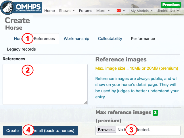 - If your horse's color is hard to identify, you may also want to identify it here, especially if it is Rare, Historical or Restricted. (note: judges cannot see Workmanship tab info).