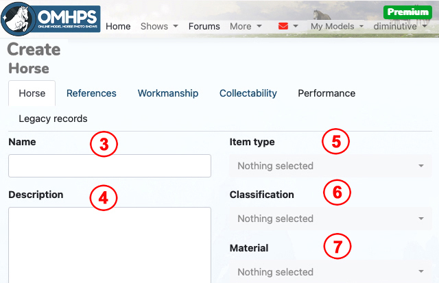 Enter your model’s Name. Please *do not use Breyer's name for the model;* this makes stewarding hard.